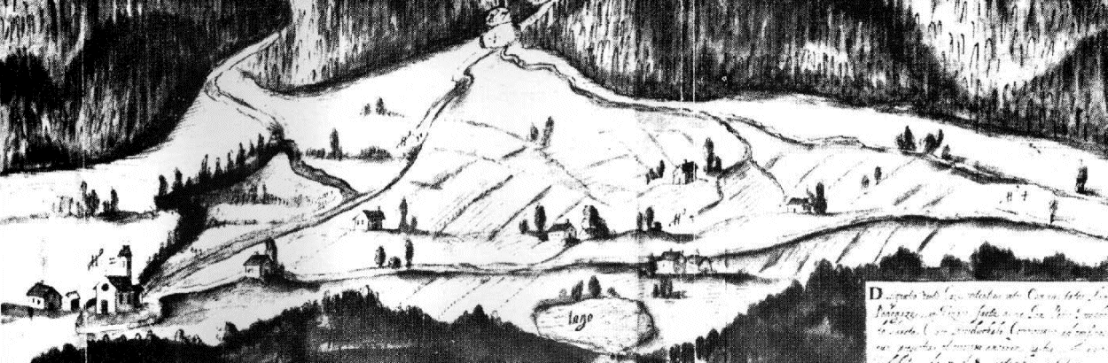 Andalo. Uno dei masi disegnati al di sopra del lago (e