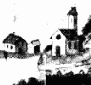 Mezzolombardo all'epoca: la chiesa di S.Pietro e il castello con la