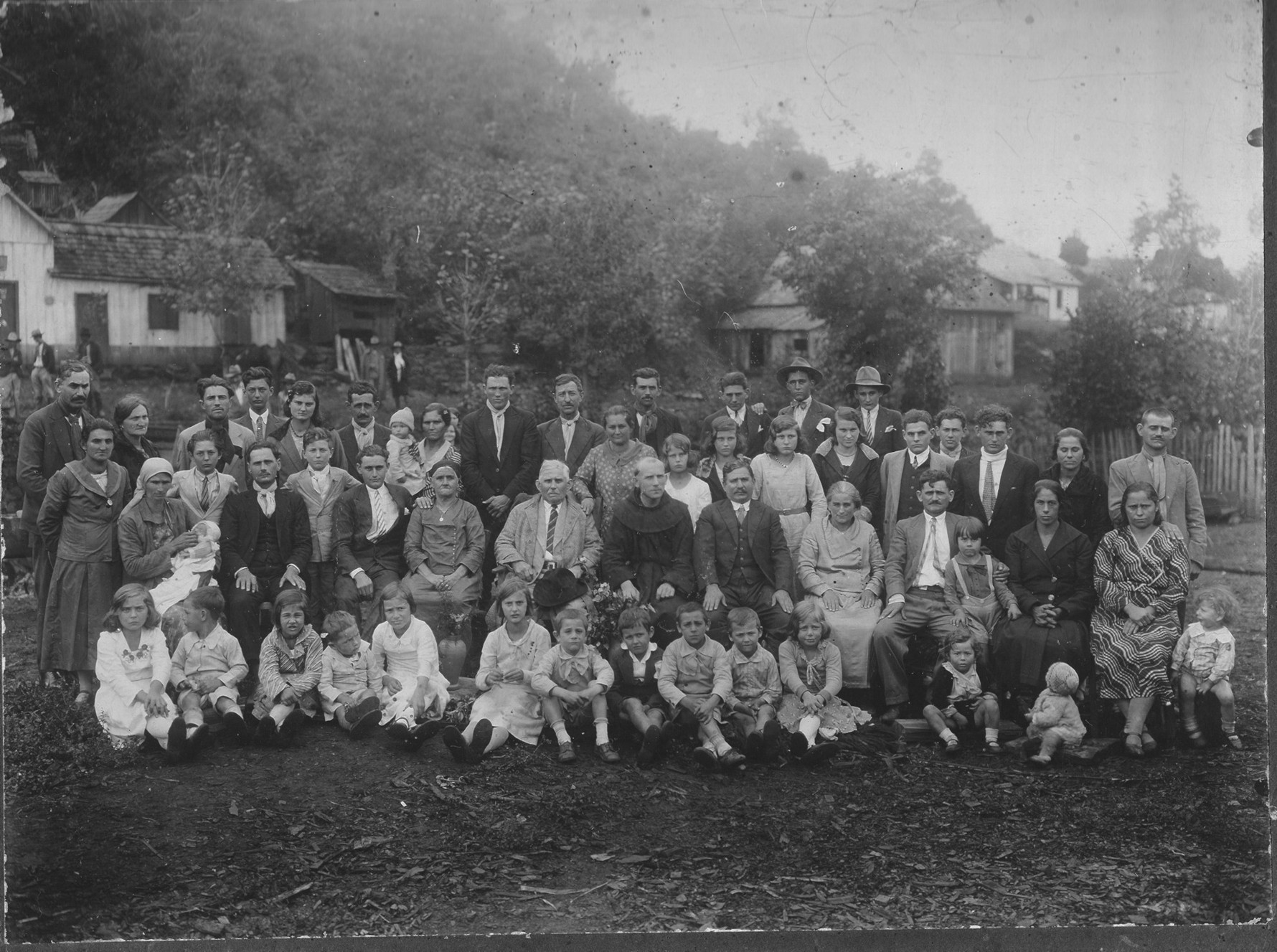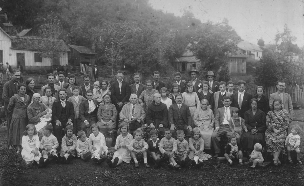 Al centro di questa foto sta Bazílio Dalfovo, tra sua moglie Maria Adami (anch'essa emigrata dall'Italia) e frate Mainolfo. La foto è del 1933 e ritrae le nozze d'oro di Bazílio e Maria, con i loro figli, generi, nuore, nipoti, nella località di Esteves Junior, Santa Catarina. La stessa foto può essere scaricata in formato originale (540 Kb), oppure in un documento Word (574 Kb) contenente tutti i nomi delle persone ritratte. Si ringrazia Pedro Dalfovo Lucyk per aver reso disponibile questa documentazione.